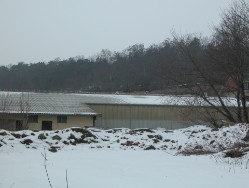 Schleppdach an der nördlichen Grundstücksgrenze (sanierungsbedürftig, Südwestausrichtung): 92m x 5m - 20° - Bitumen.